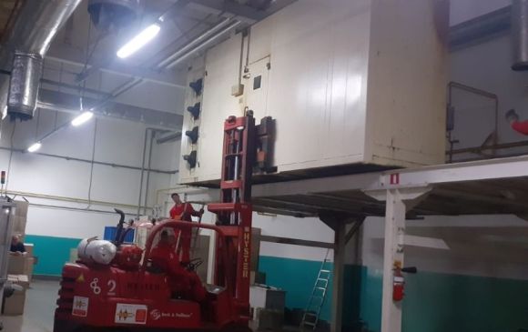Successful dismantling of a 5-ton oven using a vintage forklift